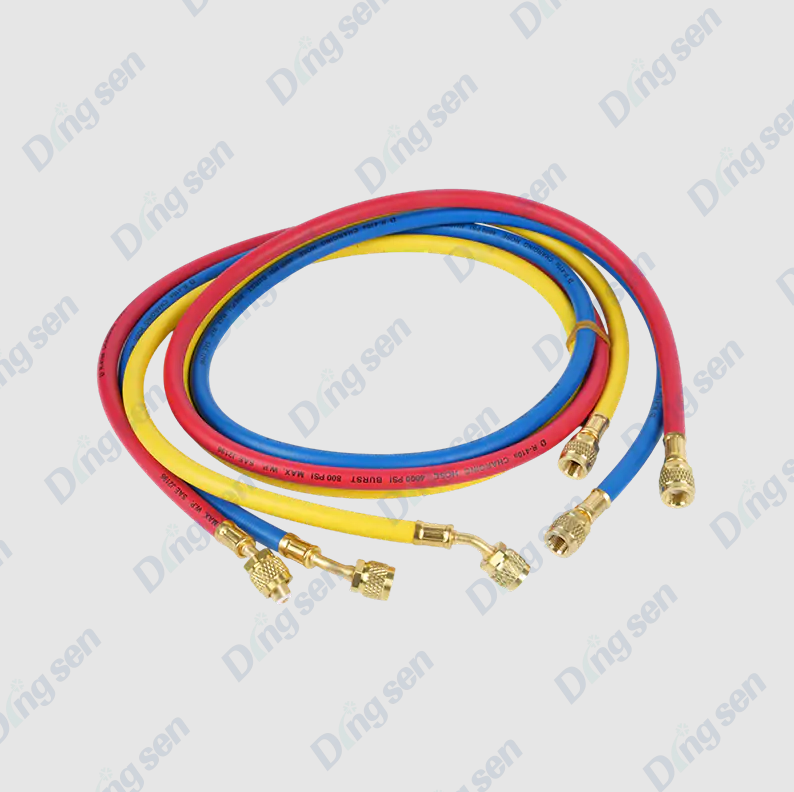 Durante la reparación y el mantenimiento del aire acondicionado, el Manguera de llenado de flúor (también conocida como manguera de llenado de flúor de refrigerante) sirve como puente que conecta el cilindro de refrigerante, el juego de manómetros del colector y el sistema de aire acondicionado. Las mangueras de llenado de flúor de alta calidad generalmente están hechas de caucho sintético con un revestimiento interno trenzado para soportar alta presión, y sus juntas están equipadas con juntas a prueba de fugas para garantizar que el refrigerante no se escape durante el proceso de carga.